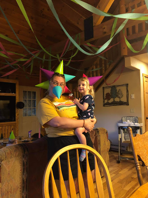 Alright, Day 5 of our trip, we convinced my parents to go on a date together and they rode on the local train, ate ice cream, and bought some Cripple Creek T-shirts. They don't get to go on dates together very often with Carson and my grandma to look after. While they were on their date, the rest of us decked out the cabin in balloons and streamers and made a chocolate coconut cake with color changing candles. We also put on birthday hats and had poppers and kazoo's to surprise my parents when they got back.